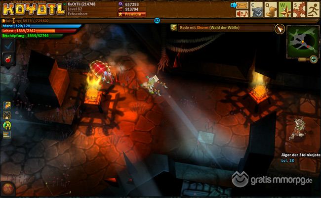 Im fantasievollen Action Browsergame Koyotl begegnet man Waldgeistern, Golems und anderen mythischen Wesen. Man reist durch die Wildnis, nimmt sich in Acht vor den Lavagruben und bewegt sich durch düstere, gefährliche Höhlensysteme. Auf deinen Wegen trifft man auf Magma-Golems und Waldgeister, die nichts Gutes im Schilde führen. Im 3D-Rollenspiel Koyotl muss man stets auf die lauernden Gefahren achten und sich gegen unzählige Gegner verteidigen.