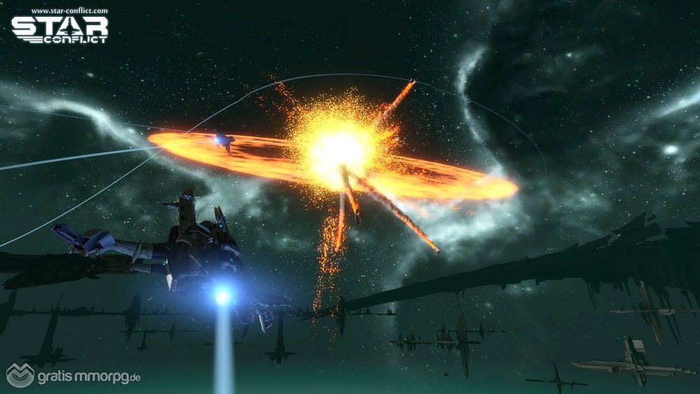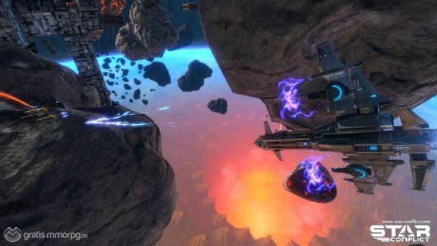 Die Grafiken in Star Conflict sind eines der Elemente, die uns am meisten beeindruckt haben. Sie sind extrem formvollendet, scharf und bieten detaillierte 3D-Modelle für die Schiffe sowie nette Licht- und Spezialeffekte. Es ist ein Vergnügen in den außergewöhnlich realistischen verlassenen Strukturen im Weltall, zwischen Asteroiden und Trümmern umherzufliegen und vor einem riesigen leuchtenden Planeten zu kämpfen. Die gesamte Weltraumatmosphäre ist absolut beeindruckend.