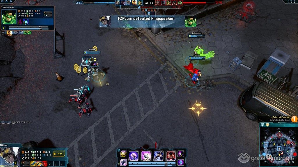 Die Spieler können diesen Punkt unter ihre Kontrolle bringen, wodurch dann Angriffsdrohnen herbeigerufen werden, die als Elitemobs fungieren und die Gegner abwehren, sowie Meteoriten, die auf dem" Dschungel"gebiet der Karte in der Nähe der feindlichen Basis niedergehen, was deren Zugang zu ihren Ressourcen erschwert. Unser Team hat es ein paar Mal geschafft, den Orbitalschlag auszulösen, als absolute Neulinge hatten wir jedoch ehrlich gesagt keine Ahnung, wie unsere Teampartner dies geschafft haben oder zu welchem Zeitpunkt dies möglich wurde.